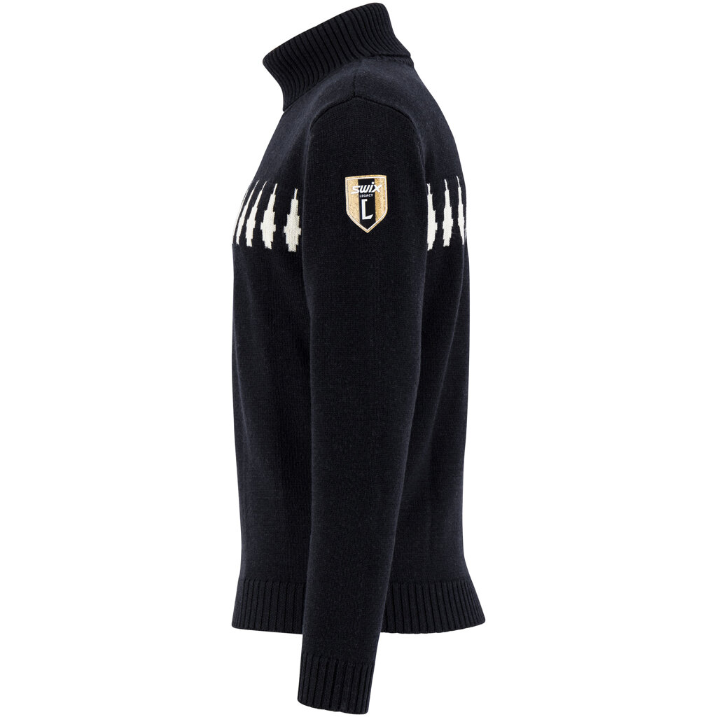 Pletený svetr Legacy je inspirován dlouhou tradicí norského běžeckého lyžování. V roce 1974 zakoupila společnost Swix továrnu na výrobu holí Liljedahl. Právě do tohoto období se vrací svým konceptem kolekce Legacy. Tento svetr je speciálně navržený pro milovníky běžeckého lyžování v poklidném tempu a je vyrobený ze 100% merino vlny. Svetr nese motiv lilie, která se také nacházela na lyžařských holích ze 70. let. Rolák z žebrovaného úpletu vás udrží v teple během velmi chladných dní.