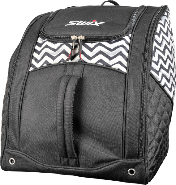 Velký hlavní úložný prostor uprostřed pro uložení helmy aˆ dalšího vybavení. Dva úložné prostory na ˆbocích pro uložení bot do ˆvelikosti 13. Obě boční kapsy mají drenážní otvory. Extra úložný prostor na ˆzip na ˆvnejší části batohu pro uložení vosku aˆ nářadí. Vysoce odolná rukojeť na ˆpřední straně aˆ vyztužené ramenní popruhy vzadu. Hladká celtovina naˆ spodní části pro lepší ochranu proti nepříznivým podmínkám aˆ pro udržení vybavení vˆ suchu.