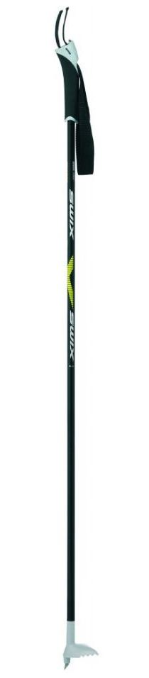 Cylindrické hliníkové hole na běžky Swix Comp junior jsou osazeny rukojetí PC, anatomicky tvarovaným poutkem a závodním talířkem.