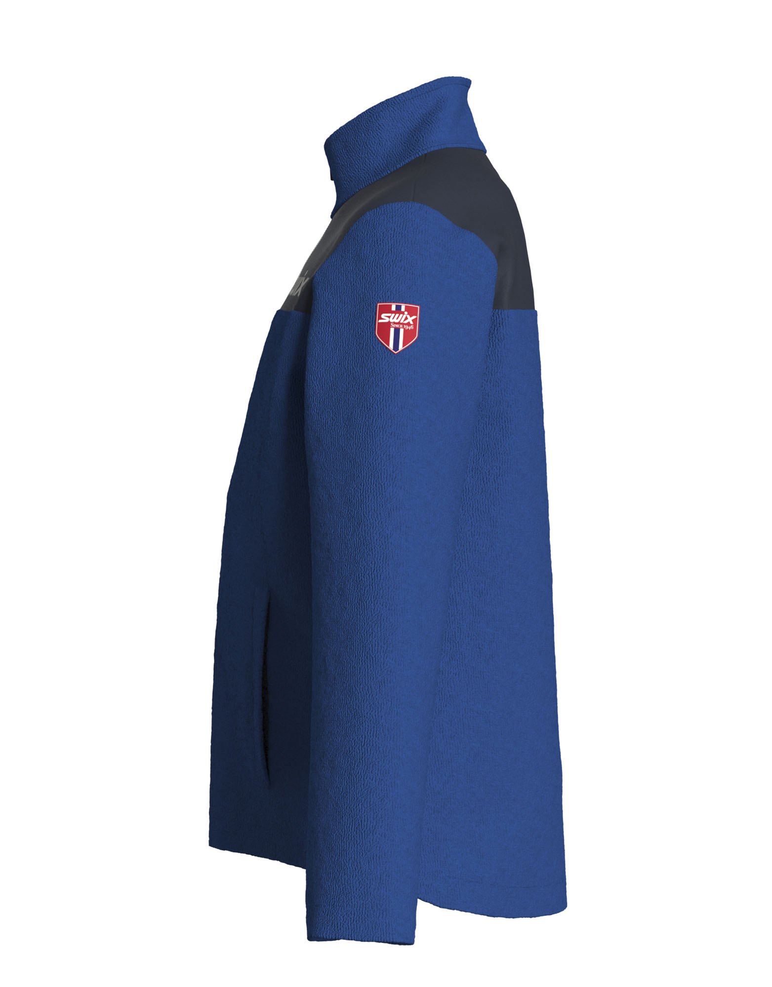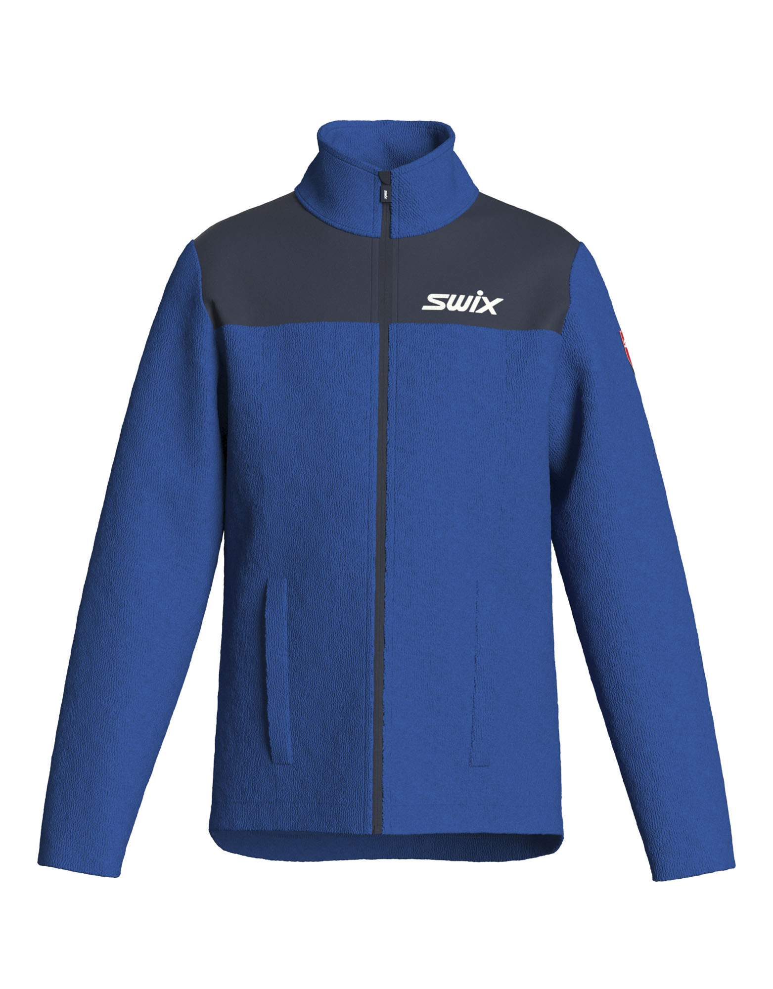 kapsami. Ozdobné a stylové logo Swix na pravé paži.