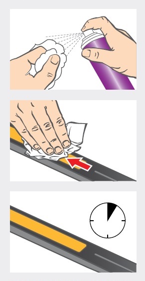 1. Nastříkejte SKIN CARE na pás nebo přímo na fiberlene utěrku.