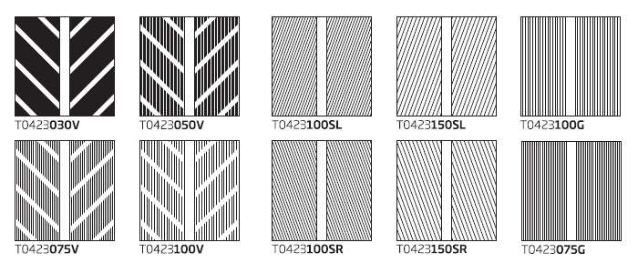 Standardně se dodává s přerušovaným vzorkem V 0,5mm. Válečky lze snadno vyměnit. Na výběr je velké množství vzorů (přerušované, lineární, závitové).